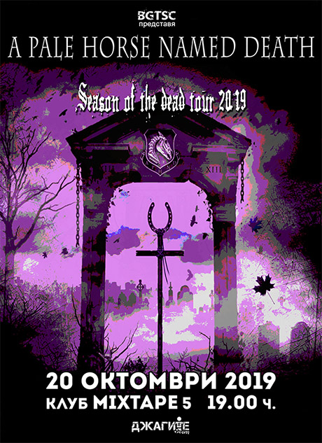 BGTSC представя: Концерта на A PALE HORSE NAMED DEATH, който ще се състои тази година на 20 октомври от 19:00 часа в столичния клуб Микстейп 5. Събитието е част от турнето „Season Of The Dead Tour 2019”, представящо най-доброто от групата!