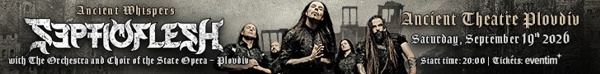 Гледайте видео към заглавното парче от новия албум на KREATOR "Krushers of the World" | 18.01.2026Ще издадат посмъртно ново EP на John Sykes | 18.01.2026Вижте новия видеоклип на GOTTHARD "Smiling in the Pouring Rain" | 18.01.2026LION'S SHARE с лирик-видео към сингъла "Another Desire" | 18.01.2026Гледайте новото видео на SIRENIA "Callous Eyes" | 18.01.2026На 19 януари в "От другата страна" по радио "Варна" | 18.01.2026Чуйте новата песен на INNERHELL "Nocturnal Tormentor" | 16.01.2026Чуйте новия сингъл на COOL DEN "Смъртта на розата" | 16.01.2026BLAZON STONE на фестивала "Blazing Steel" на к-г "Стринава" (30 май) | 16.01.2026GUTALAX идват за феста "Slaughtery Near the Grave Yard" на 14 ноември | 16.01.2026LAMB OF GOD издават албума "Into Oblivion" през март, вижте видео към заглавното парче | 16.01.2026GHOST пуснаха официално онлайн кавъра си на "It's A Sin" на Pet Shop Boys | 16.01.2026CORONER споделят във "Фрактура" коя е основната причина да свирят предимно на фестивали | 16.01.2026Слушайте новия албум на KREATOR "Krushers of the World" | 16.01.2026Днес излиза новият албум на EDENBRIDGE "Set the Dark on Fire", чуйте го | 16.01.2026Flea (RED HOT CHILI PEPPERS) издава дебютния си соло албум през март, чуйте още един сингъл | 15.01.2026MENTAL DESTRUCTION с лирик-видео към песента "Not Gone" | 15.01.2026Charlotte Wessels и THE OBSESSION с видео към новата песен "After Us, the Flood" | 15.01.2026FORBIDDEN ще издадат първи албум от 16 години насам през лятото | 15.01.2026Вижте и видео на WITHIN TEMPTATION и SMASH INTO PIECES към песента "Somebody Like You" | 15.01.2026BLACK LABEL SOCIETY представят видеото "Name in Blood" | 14.01.2026SEPTICFLESH с оркестър в Античния театър в Пловдив на 19 септември | 14.01.2026SUNN O))) издават първи нов албум от седем години насам през април, чуйте песента "Glory Black" | 14.01.2026На 14 януари в "Тотална инвазия" по радио "Z-Rock" | 14.01.2026И MASSACRE ще свирят на "Running Free Festival 2026" | 13.01.2026ELECTRIC DRAGON представят лирик-видеото "Hydora" | 13.01.2026Слушайте дебютния албум на CORPSEMANGLE "Eating the Damned" | 13.01.2026Мюзикълът "Rock Sensation" разпродаде Зала 1 на НДК | 13.01.2026Б.Т.Р. издадоха първи концертен албум, правят мини-турне с АХАТ през март | 13.01.2026Гърците SHADOWMASS и TYPHUS ще свирят и в Пловдив на 1 февруари | 13.01.2026Новият албум на BLACK LABEL SOCIETY "Engines of Demolition" ще включва песен, посветена на Ozzy Osbourne | 13.01.2026ENEZOTHE тръгват на кратка обиколка в страната заедно с ASURA | 12.01.2026VRANI VOLOSA с концерт в Бургас на 14 февруари | 12.01.2026Почина съоснователят на GRATEFUL DEAD Bobby Weir | 12.01.2026Барабанистът Jay Weinberg напуска SUICIDAL TENDENCIES | 12.01.2026Германската банда с българско участие WASTED MANIACS представя видеото "Death Race" | 11.01.2026На 12 януари в "От другата страна" по радио "Варна" | 11.01.2026Още един сингъл от MAYHEM - "Life Is a Corpse You Drag" | 10.01.2026THE 69 EYES подписаха с "BLKIIBLK", вижте видеото "I Survive" | 10.01.2026Чуйте сингъла на WITHIN TEMPTATION и SMASH INTO PIECES "Somebody Like You" | 9.01.2026Yngwie Malmsteen разкрива във "Фрактура" кой е музикантът, с когото винаги е искал да запише обща песен | 9.01.2026Слушайте едноименния нов албум на ALTER BRIDGE | 9.01.2026Днес излиза новият албум на BEYOND THE BLACK "Break the Silence", чуйте го | 9.01.2026Вижте видеото на FREEDOM CALL с гост Petri Lindroos от ENSIFERUM "Heavy Metal Happycore" | 8.01.2026"February Massacre 2026" ще се състои на 20 и 21 февруари | 8.01.2026Британците IHLO и норвежците CRYSTAL HORIZON ще свирят с LEPROUS в София | 8.01.2026Вижте видеото на Paul Gilbert "Show Not Yourself Glad (At the Misfortune of Another)" | 8.01.2026Гледайте новия видеоклип на SYLOSIS "Erased" | 8.01.2026Вижте "визуализация" към новия сингъл на PUSCIFER "ImpetuoUs" | 8.01.2026NANOWAR OF STEEL с лирик-видео към заглавното парче от новото си EP | 8.01.2026ALTER BRIDGE с "визуализация" на сингъла "Scales Are Falling" | 8.01.2026Dave Mustaine казва защо не кани бивши членове на MEGADETH на прощалното турне - "Това не е куклено шоу" | 7.01.2026Rob Halford е вече 40 години напълно трезвен | 7.01.2026На 7 януари в "Тотална инвазия" по радио "Z-Rock" | 7.01.2026Китаристът Tyler Bates напуска тур-бандата на Marilyn Manson | 6.0