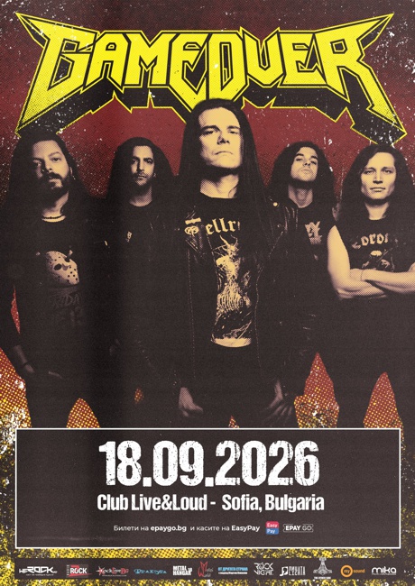 Енергични шоута, които изпомпват адреналин във вените ви и ви карат да си разтърсвате главите: това е Game Over!Концертът ще е на 18-ти септември 2026 г. в клуб Live & Loud (София, ул. Позитано №8). Билети в офис мрежата на EasyPay и от epaygo.bg: https://epaygo.bg/9881783824 Цената им ще расте с наближаване на датата на концерта. В деня на концерта билети ще се продават само на входа на клуба на цена, която ще бъде обявена допълнително.