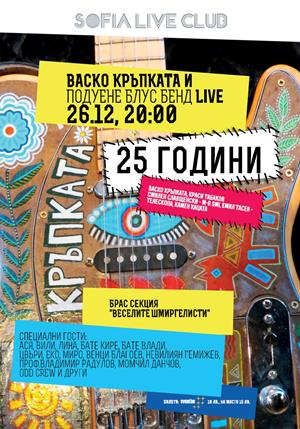 На 26-ти декември Васко Кръпката и ПОДУЕНЕ БЛУС БЕНД ще отпразнуват 25-тата си годишнина с голям концерт в Sofia Live Club.